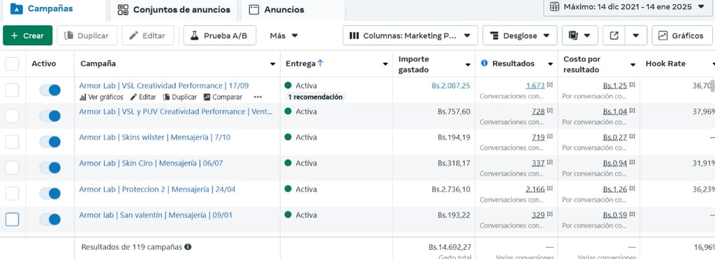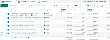 Seguimos una serie de pasos para que Meta le de una buena calificación a tu cuenta publicitaria y tengas más beneficios en cuanto a resultados, y claro, hacemos un monitoreo constante de las campañas para mejorarlas en base a un tablero de métricas optimizado.